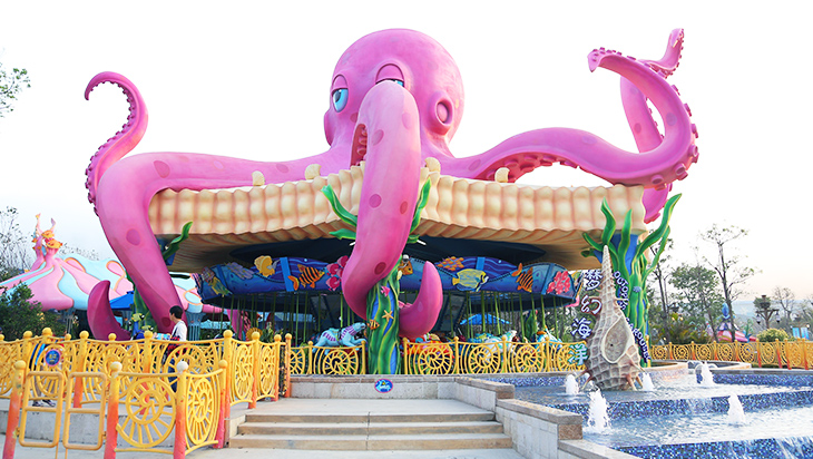 - 最龐大歡樂的海洋主題花車巡游——海洋王國大巡游包括格式各樣海洋主題花車,海洋歡樂陣容近百人,巡游演出包括美人魚、海龜、章魚、巨鯨、極地游戲、潛水艇等,大人小孩均能樂享其中,一起載歌載舞,在歡聲笑語中學習海洋元素。
