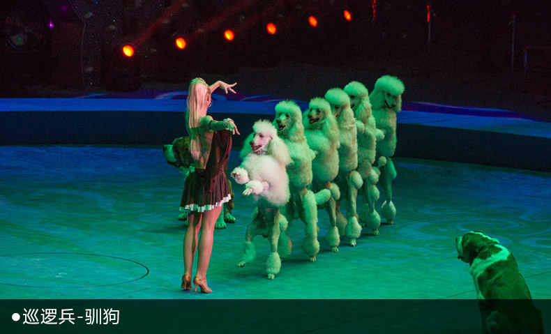 巡邏兵-馴狗2008年獲俄羅斯公主馬戲節(jié)金獎; 2009年獲第四節(jié)莫斯科國際馬戲藝術節(jié)金獎; 2010年獲西班牙阿爾瓦塞特國家馬術藝術節(jié)金獎。 美女與圣伯納和大型貴賓犬的組合,既有歡快的節(jié)奏感,同時也有憨厚機靈的對比搞笑,令觀眾耳目一新,感慨美女與動物間的默契與歡樂。